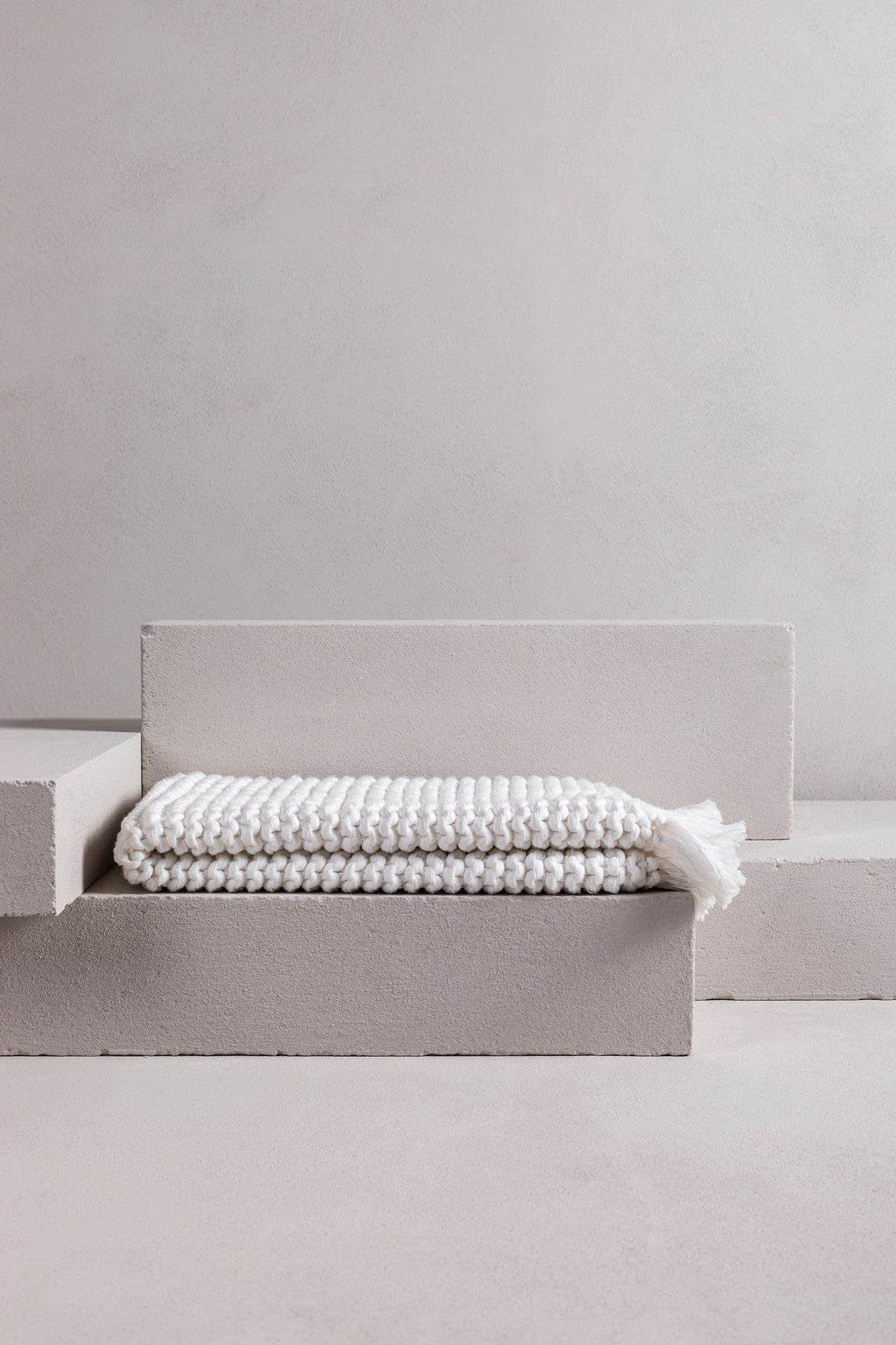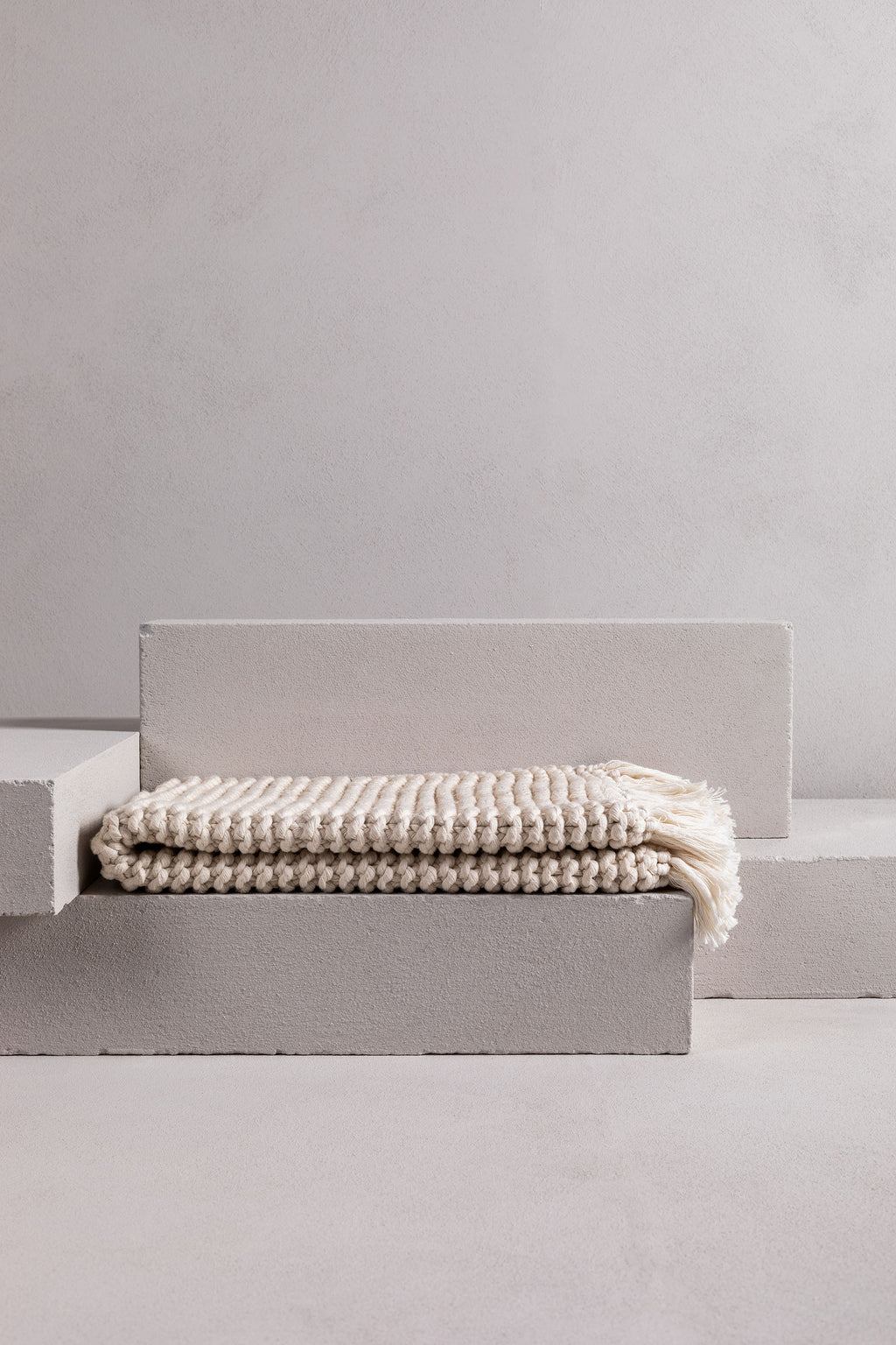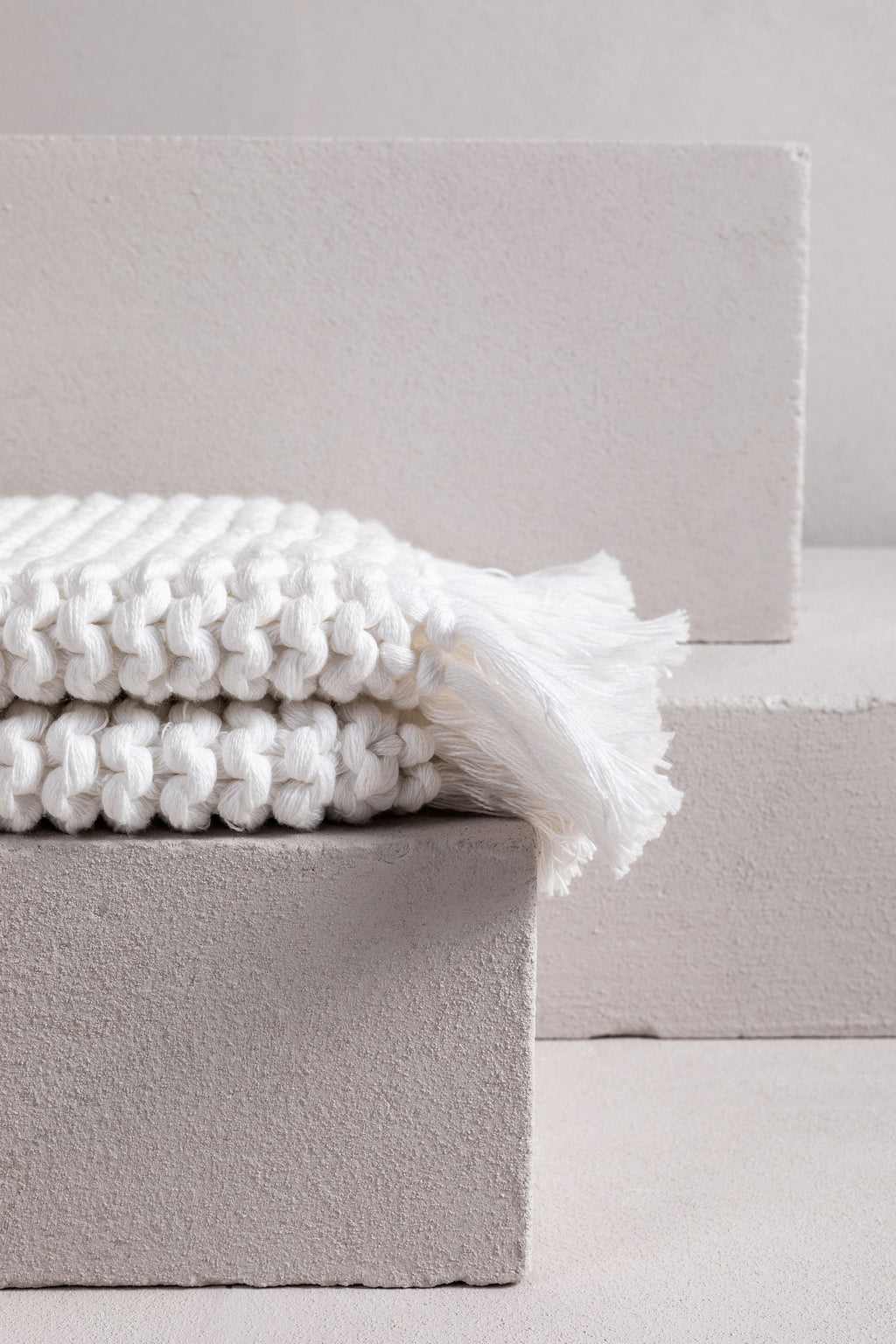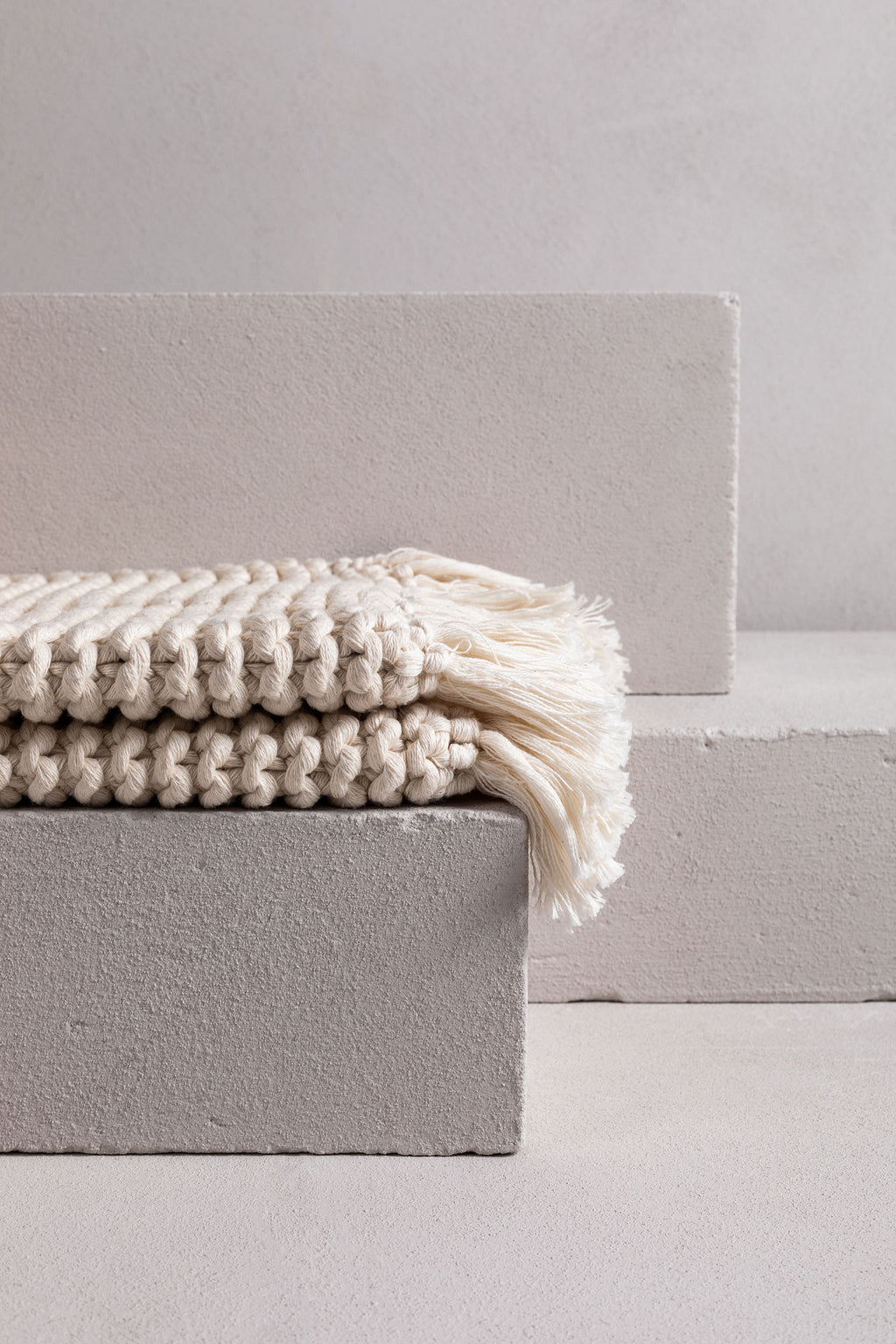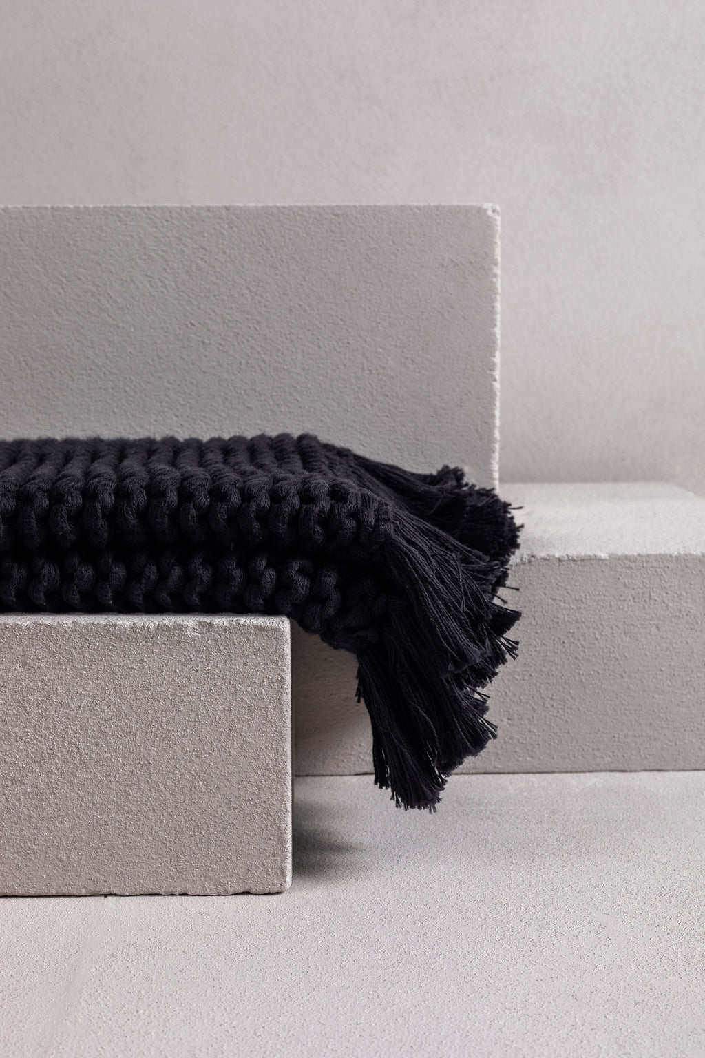 this gorgeous product is a hand-crafted bathmat or bath rug and is made exclusively for bedouin SOCIETE. many yarns form the one strand then hand knitted into a modern chunky soft tactile piece. -