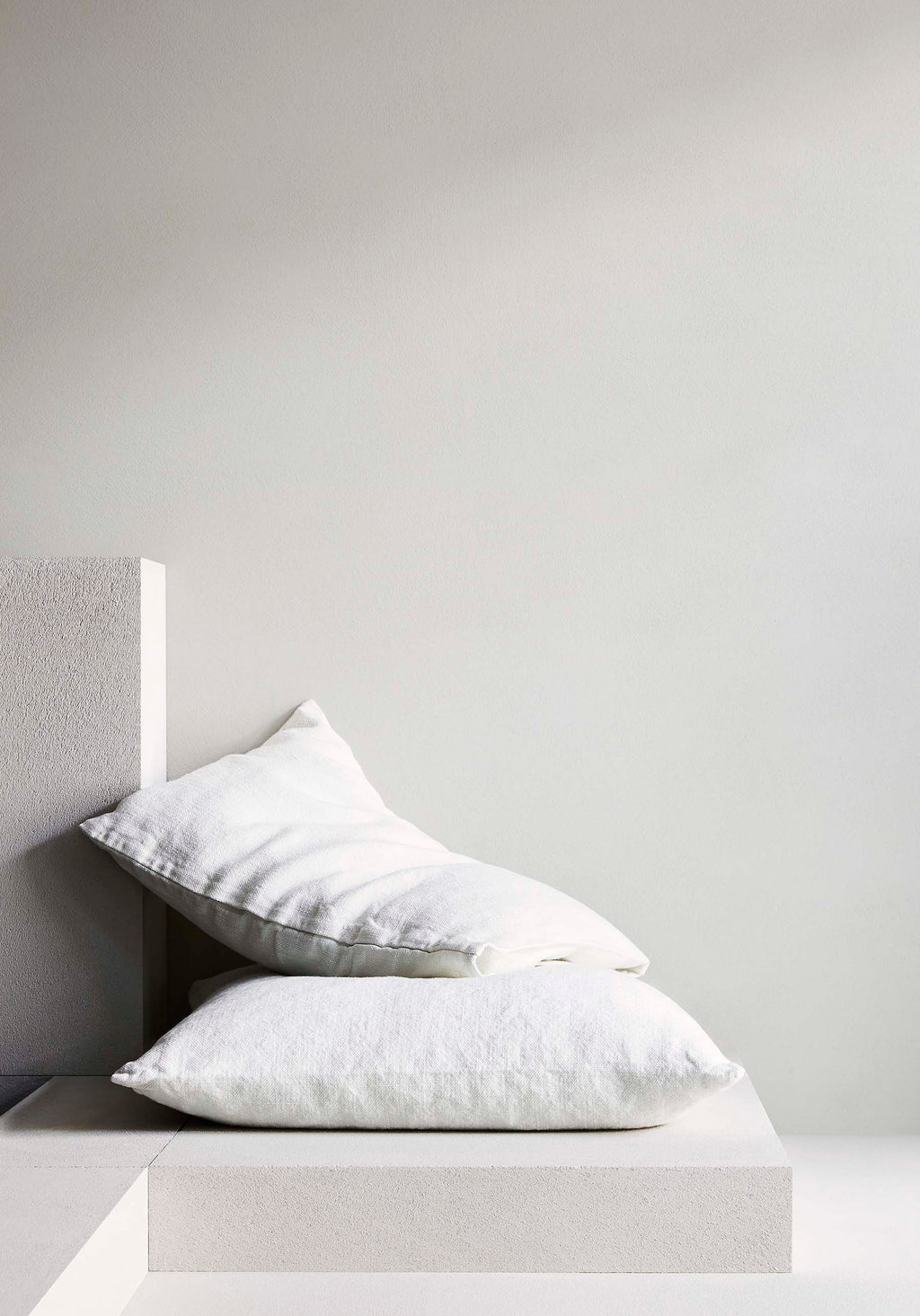 pure feather fill with cotton cover. air frequently - washable but recommend dry clean. -