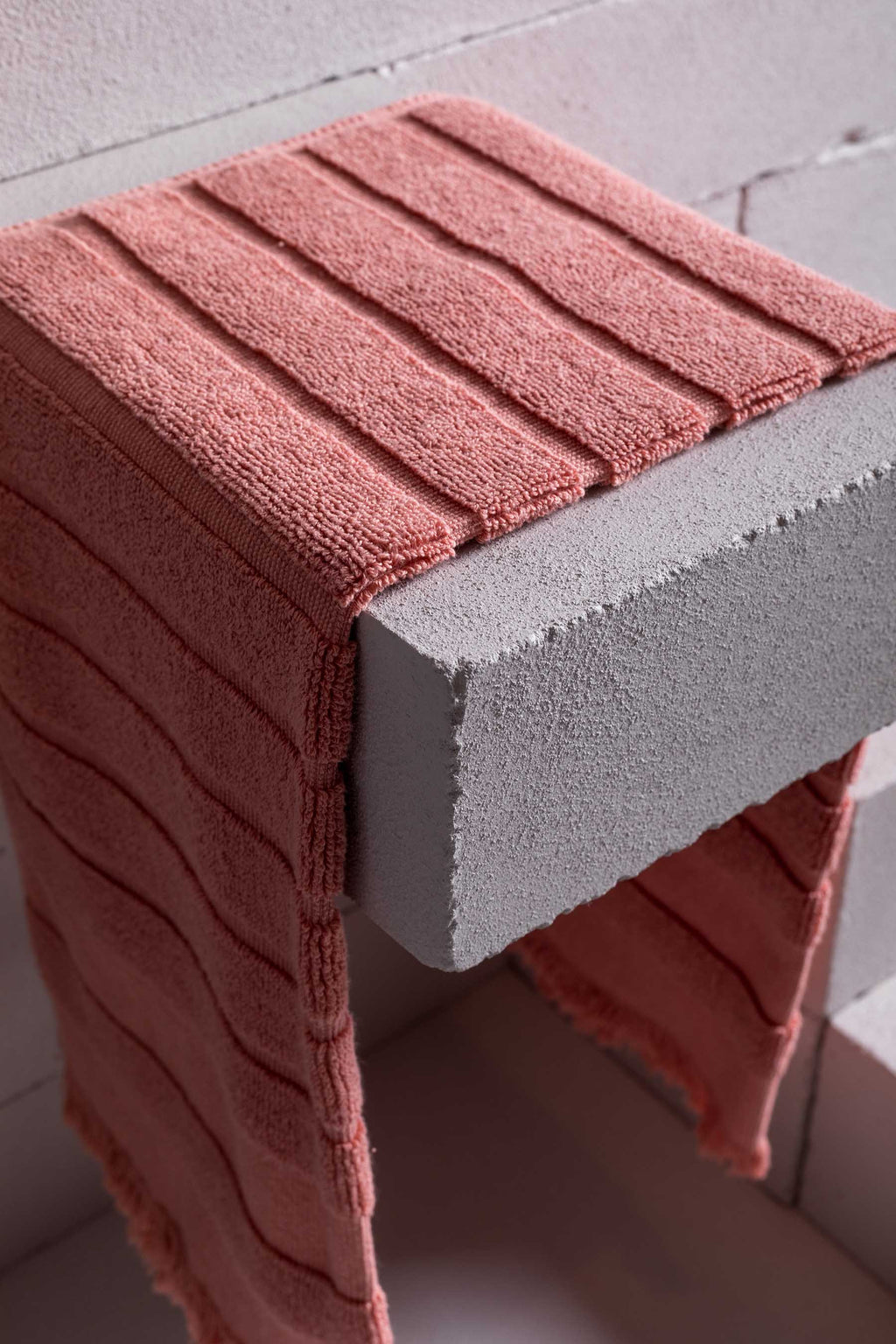 our lino towel is loomed on shuttle looms in turkey. the style of weaving creates a towel that retains a distinctive quality of luxury in hand loomed bath linens, absorbent and enduring. the hand-crafted handle, highlighting the textural beauty.