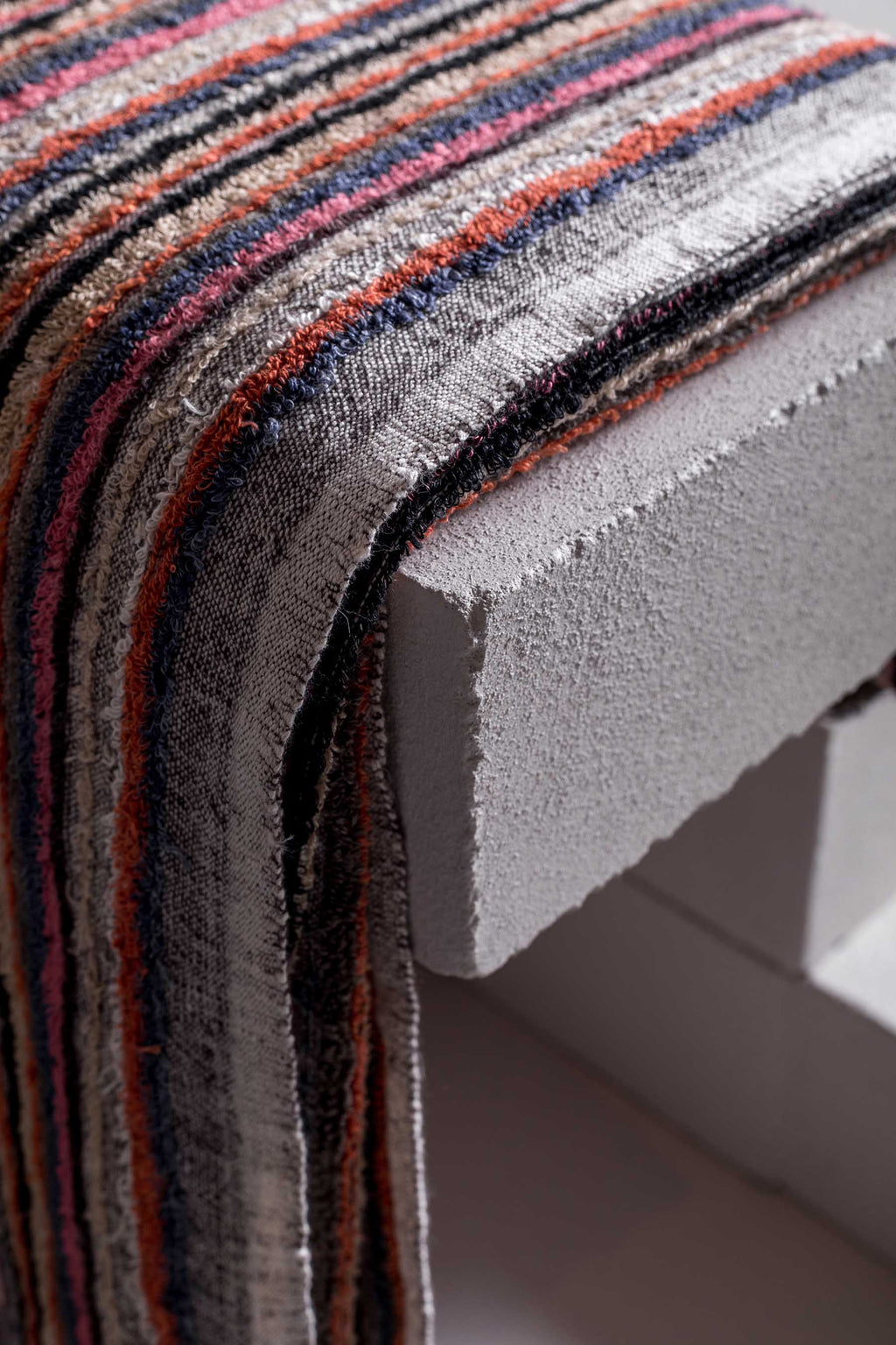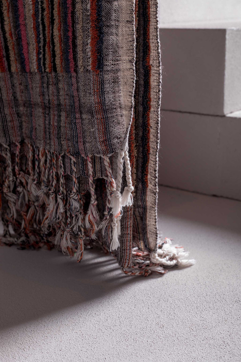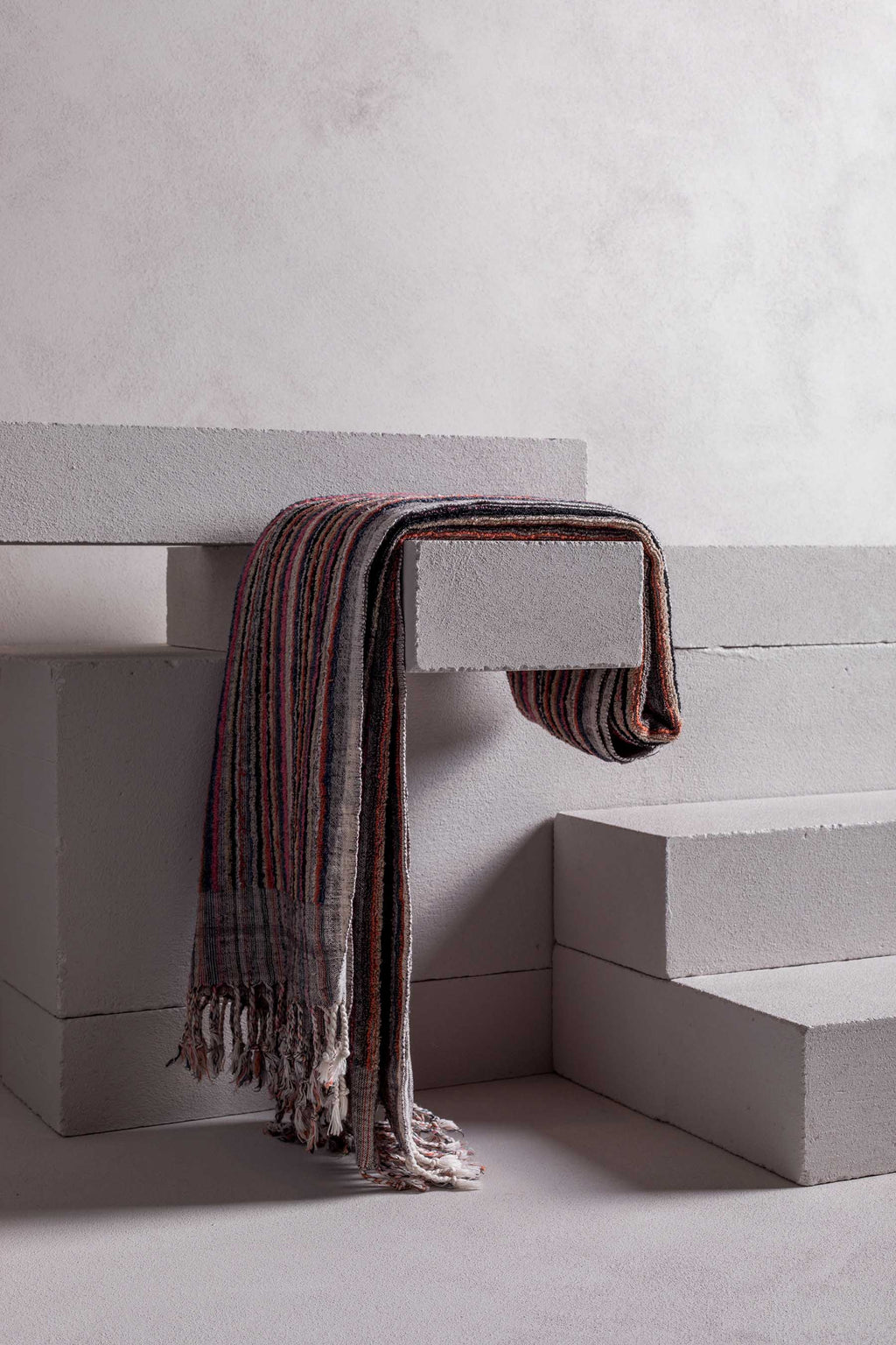 OUD – LIMITED EDITION a hand loomed towel that will exhilarate the textural senses. organic dyes (GOTS) and made with pure linen yarns. highly absorbent, softens and ages beautifully with each use. this towel is truly organic in nature and handle. our signature mineral tone colours, the design is a multi-colour melange weave base and fine short terry loop pile on top. finished with a hand twisted tassel. -