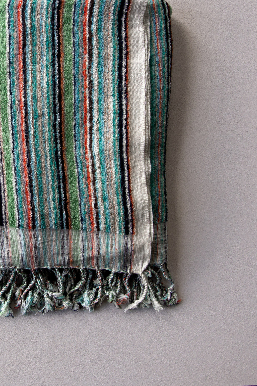 OUD – LIMITED EDITION a hand loomed towel that will exhilarate the textural senses. organic dyes (GOTS) and made with pure linen yarns. highly absorbent, softens and ages beautifully with each use. this towel is truly organic in nature and handle. our signature mineral tone colours, the design is a multi-colour melange weave base and fine short terry loop pile on top. finished with a hand twisted tassel.