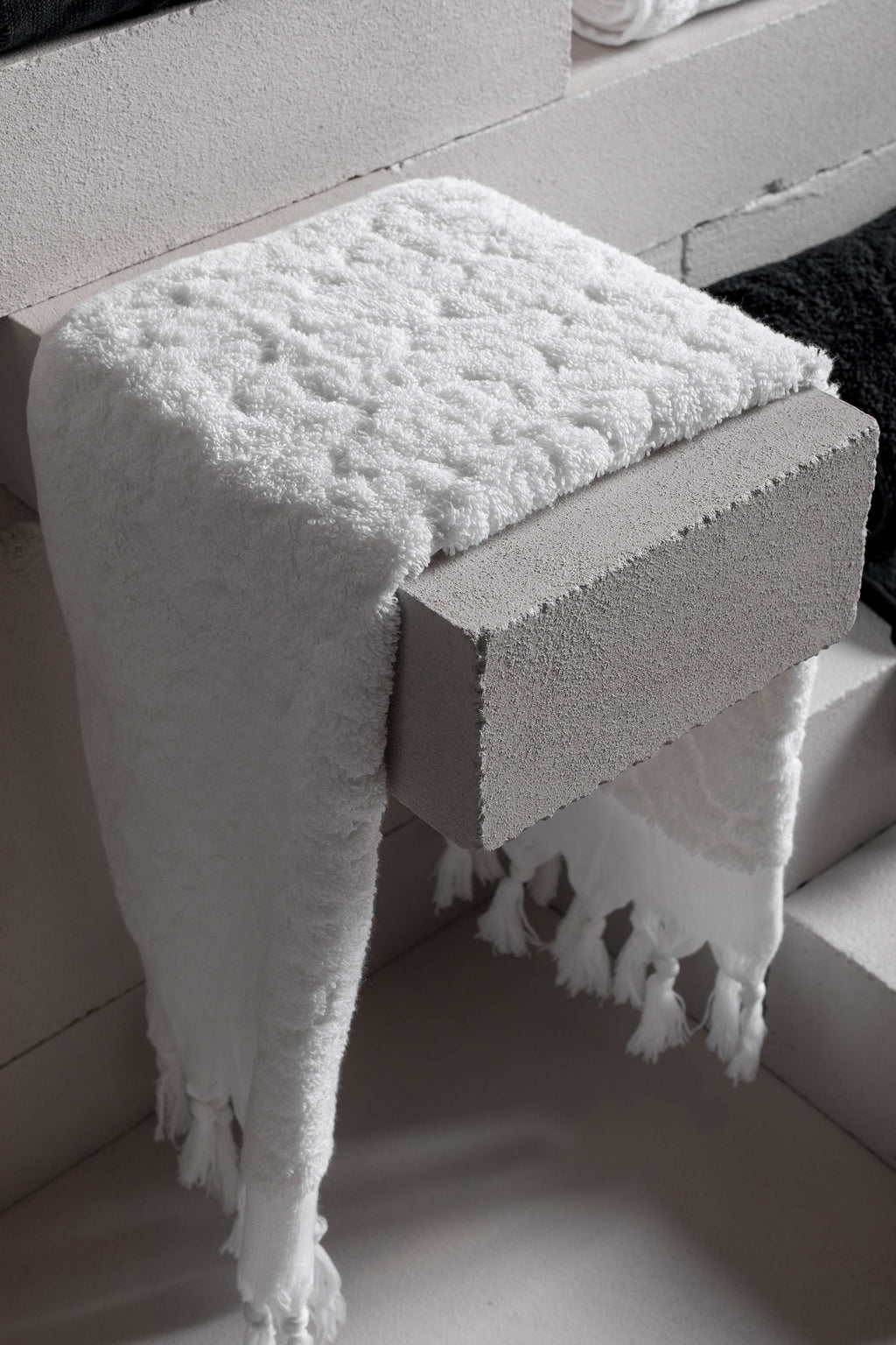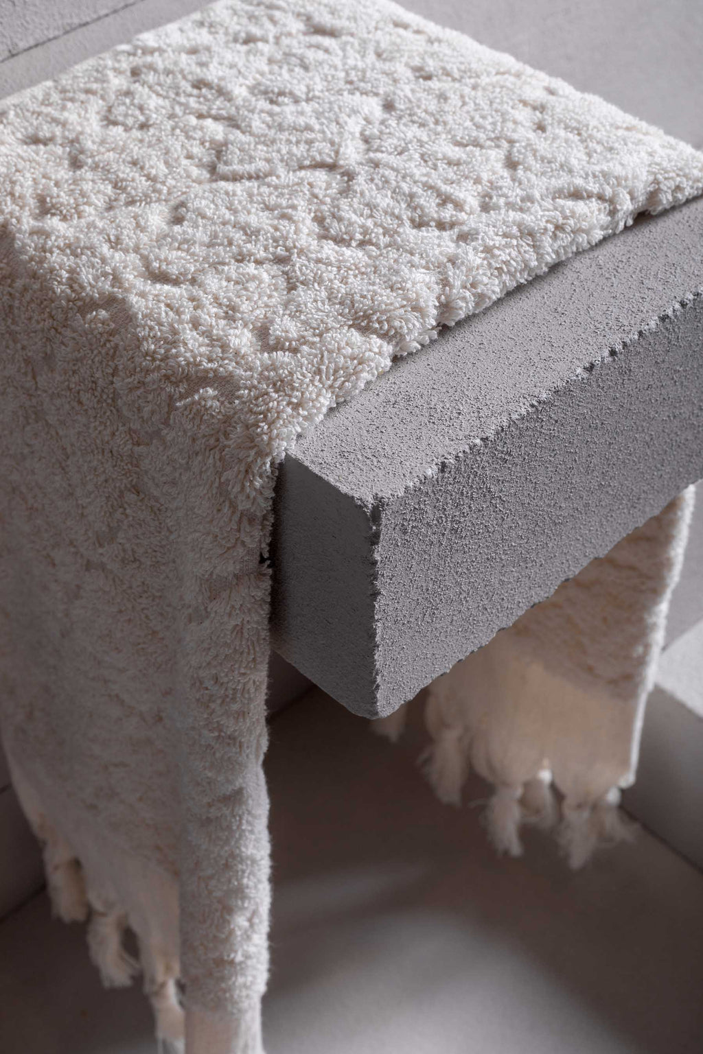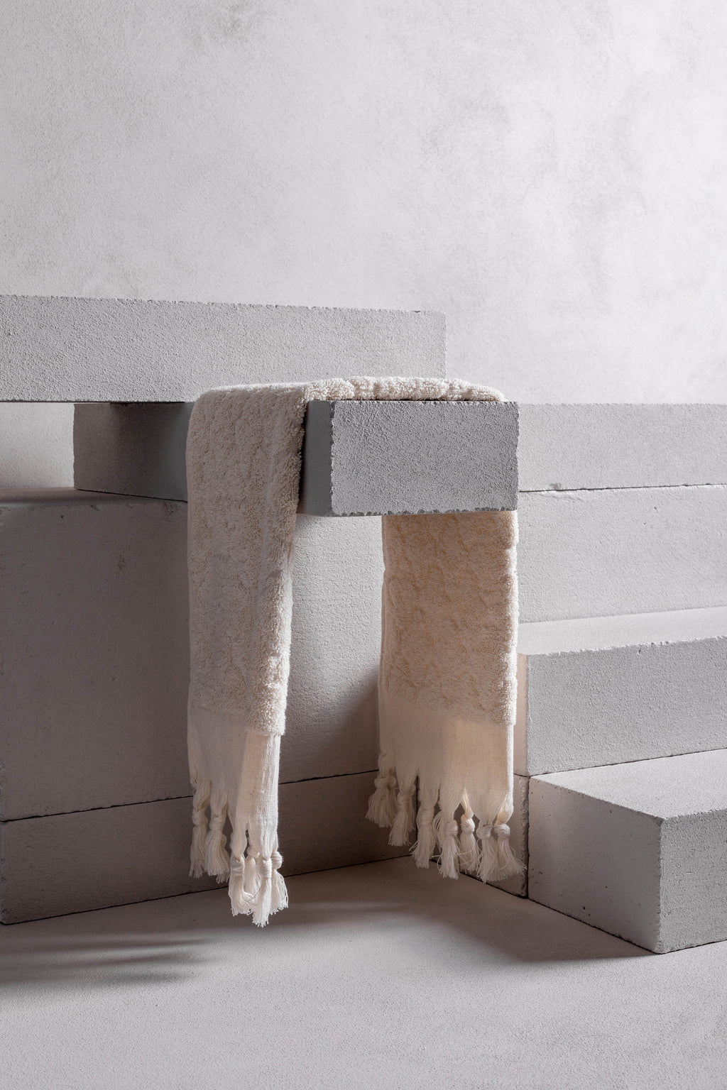 our shuttle loom towel collection is loomed on old looms in turkey by artesian weavers, a skill handed down by generations. the style of weaving creates a towel that retains a distinctive quality of luxury in hand loomed bath linens, absorbent and enduring. the hand-crafted handle, highlighting the textural beauty.