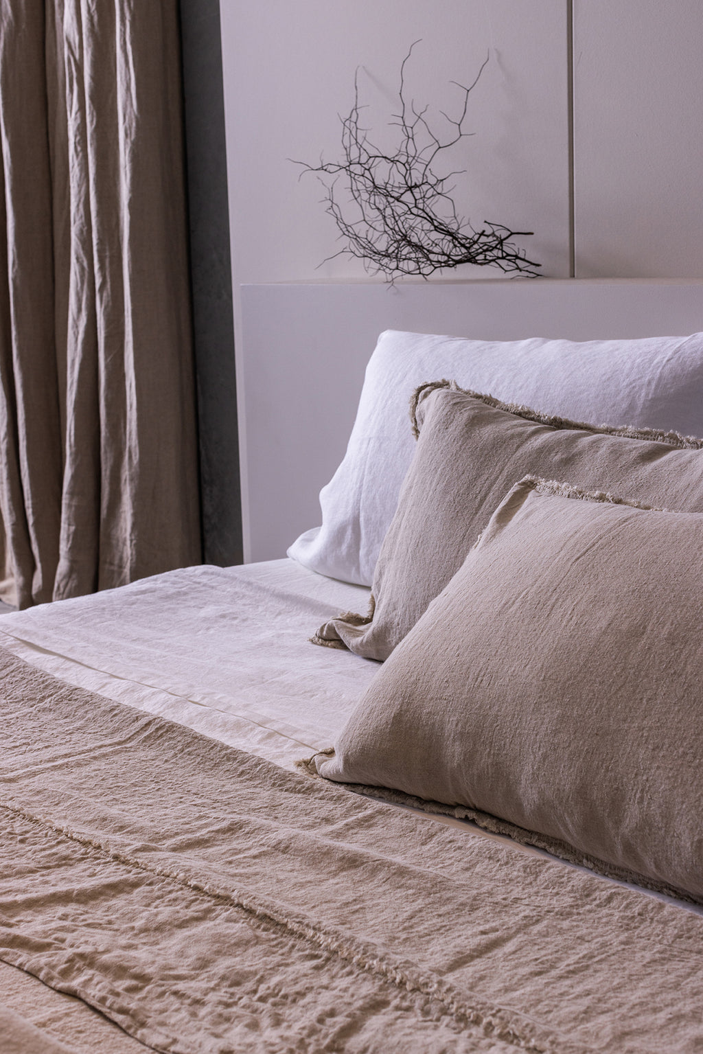 our pure linen ethereal tuft bed linen has a subtle eyelash tufted edge detail and is overlaid with a hand-crafted edge stitch. it is imbued with lightness and buoyancy which gives you a sense of the ethereal.