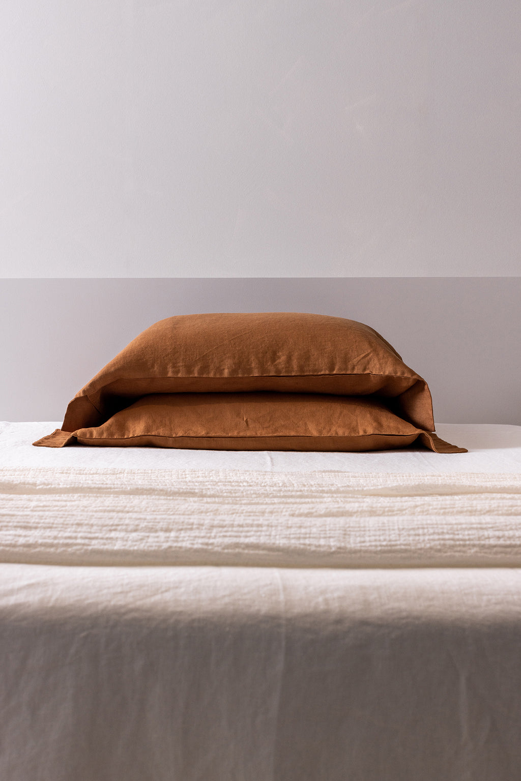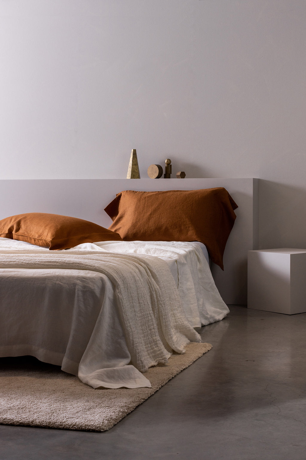 pure linen 300gsm OEKO-TEX®. organic dyes low impact and certified. the linen is specified by us and sourced from flax growing regions of belgium and northern france. the items are constructed in P.R.C by a high end specialist linen manufacturer with all final manufacturing processes are completed in australia. each product is crafted using high-end construction techniques. no detail is left unchecked. / machine wash up to 40 degrees celsius with gentle detergents. air dry or tumble dry low heat. see our linen care guide for more details on caring for your pure linen products. -