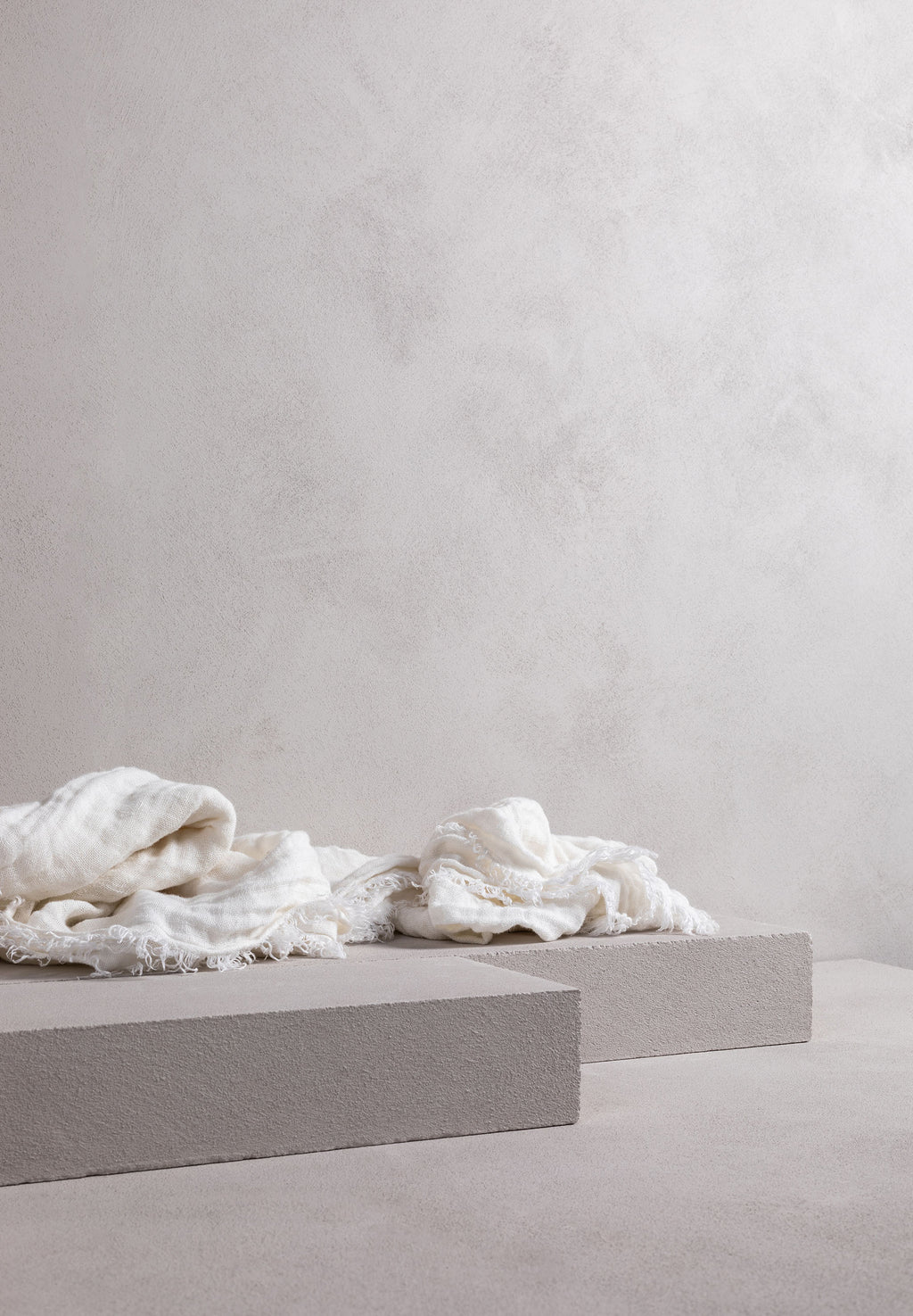 single layer of gauzy linen woven to create a dappled effect. subtle elegant finishes; a tufted fringe on two sides and hem on the other, providing the versatility to tuck in or leave loose and draping. can be used any which way on the bed. being a  large piece the throw has two top stitched seams designed to sit horizontally when on bed with fringe draping either side.
