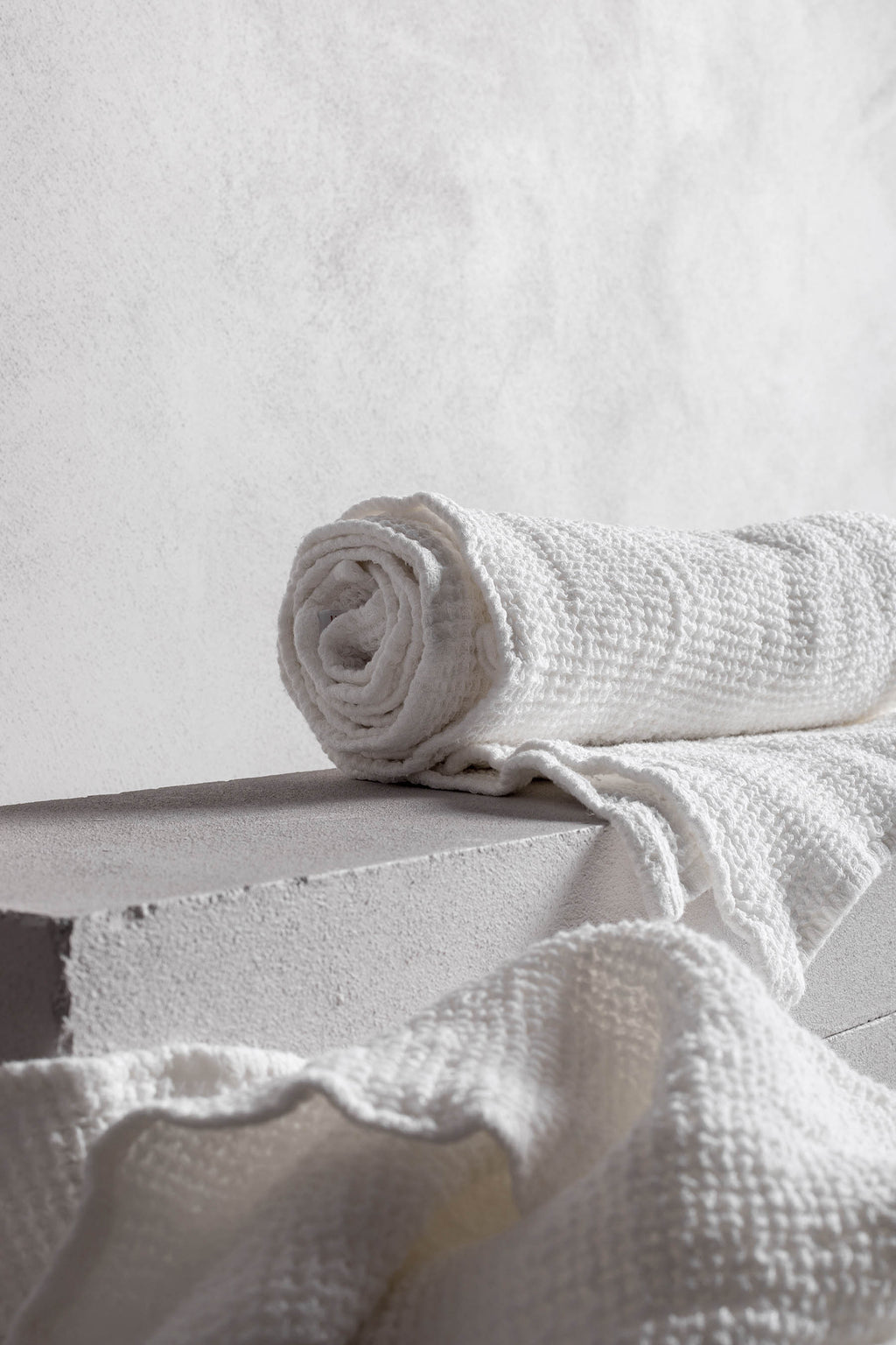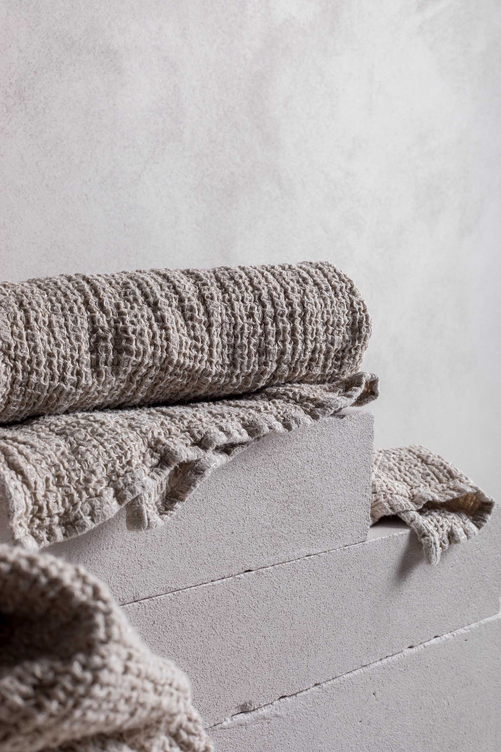 our ila JAQUE WAFFLE bath towels are something different. made from premium pure linen yarns and woven in a large waffle weave, it results in a towel with depth of character like no other towel. we call it the sophisticate of the bath linens, simple, beautiful, understated and a very european way of bath textiles. timeless modernity.