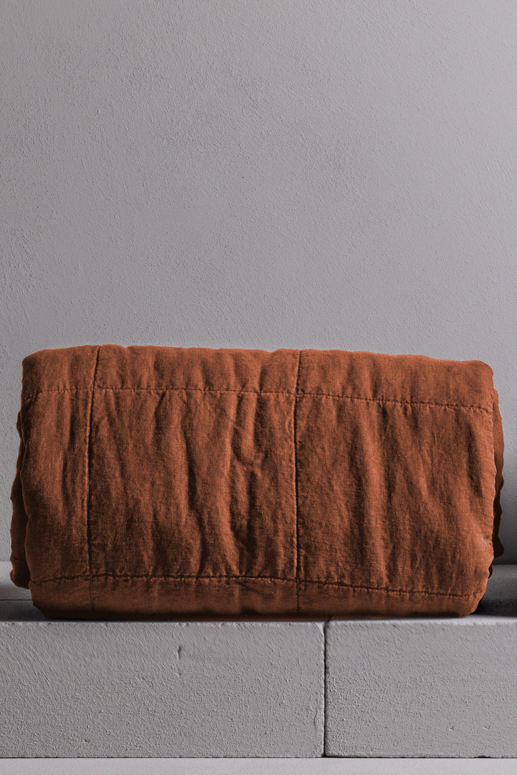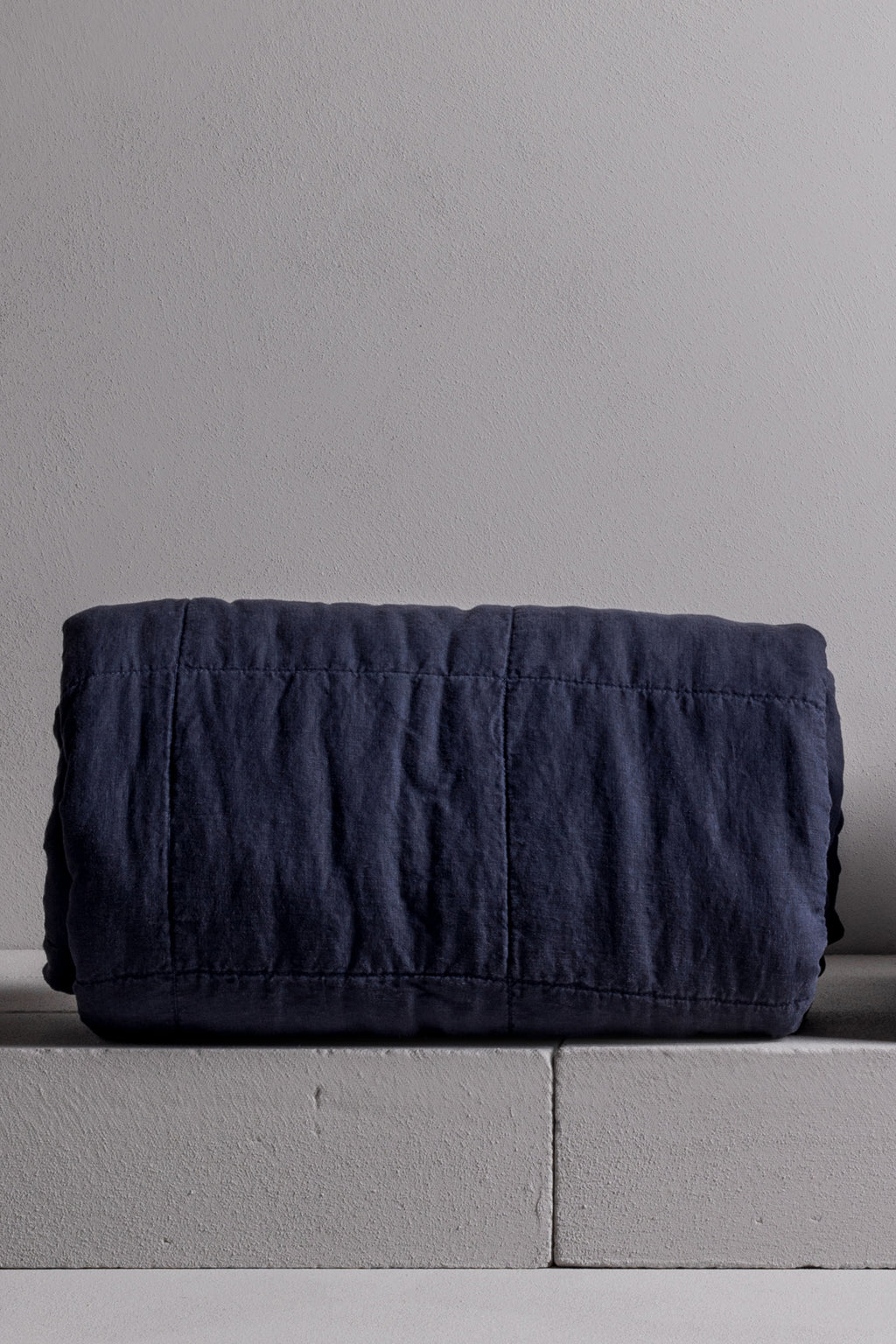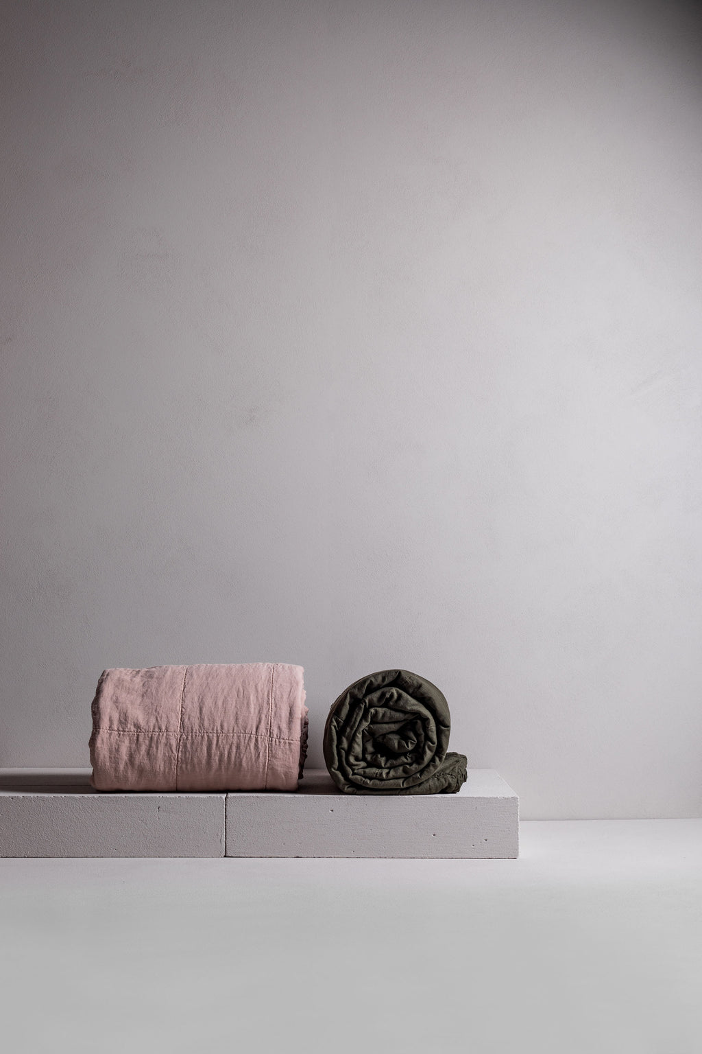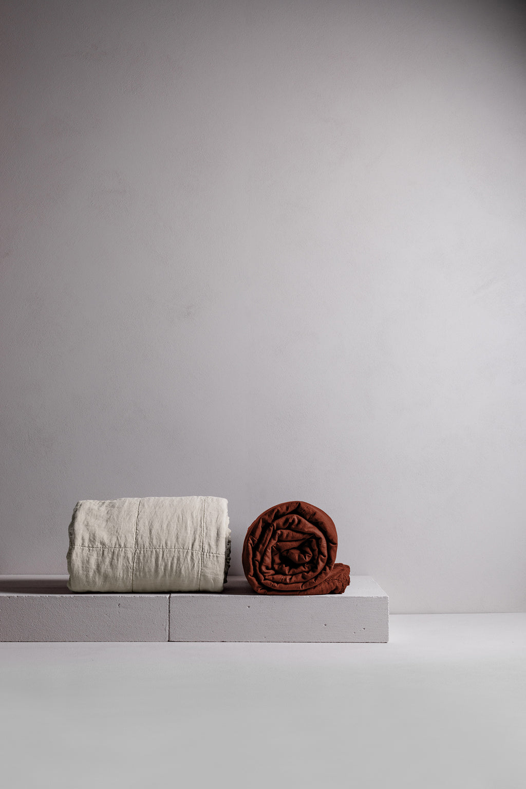 the MINERALE pure linen vintage wash stitched quilt is from the family of our MINERALE vintage wash sheeting. it is the outcome of an artisanal process that achieves a lovely matte hand-dyed finish; it relaxes the fibres to produce a soft handle and highlights the subtle colour palette that is a signature of bedouin SOCIETE. the fill is cotton.
