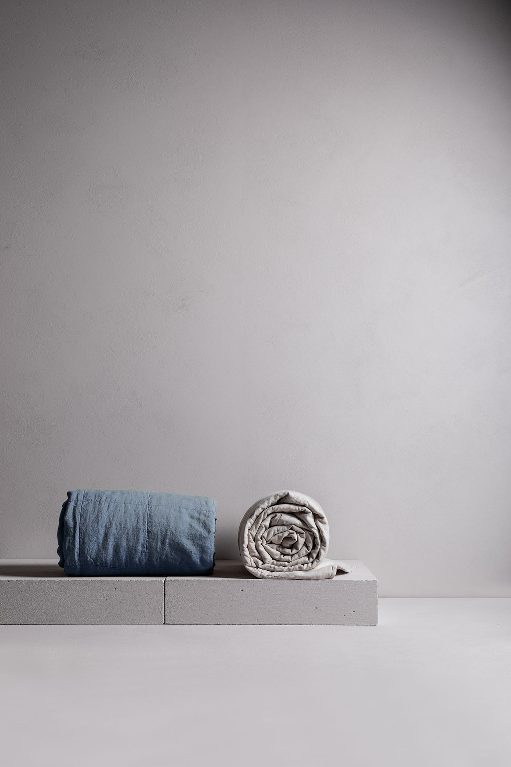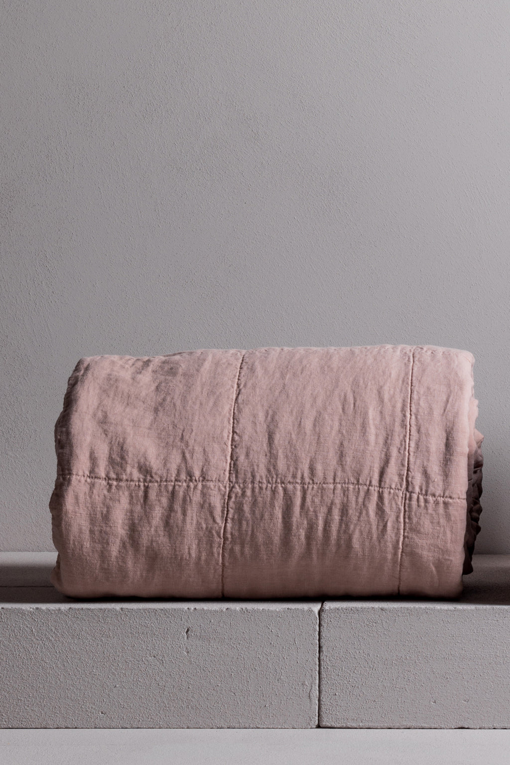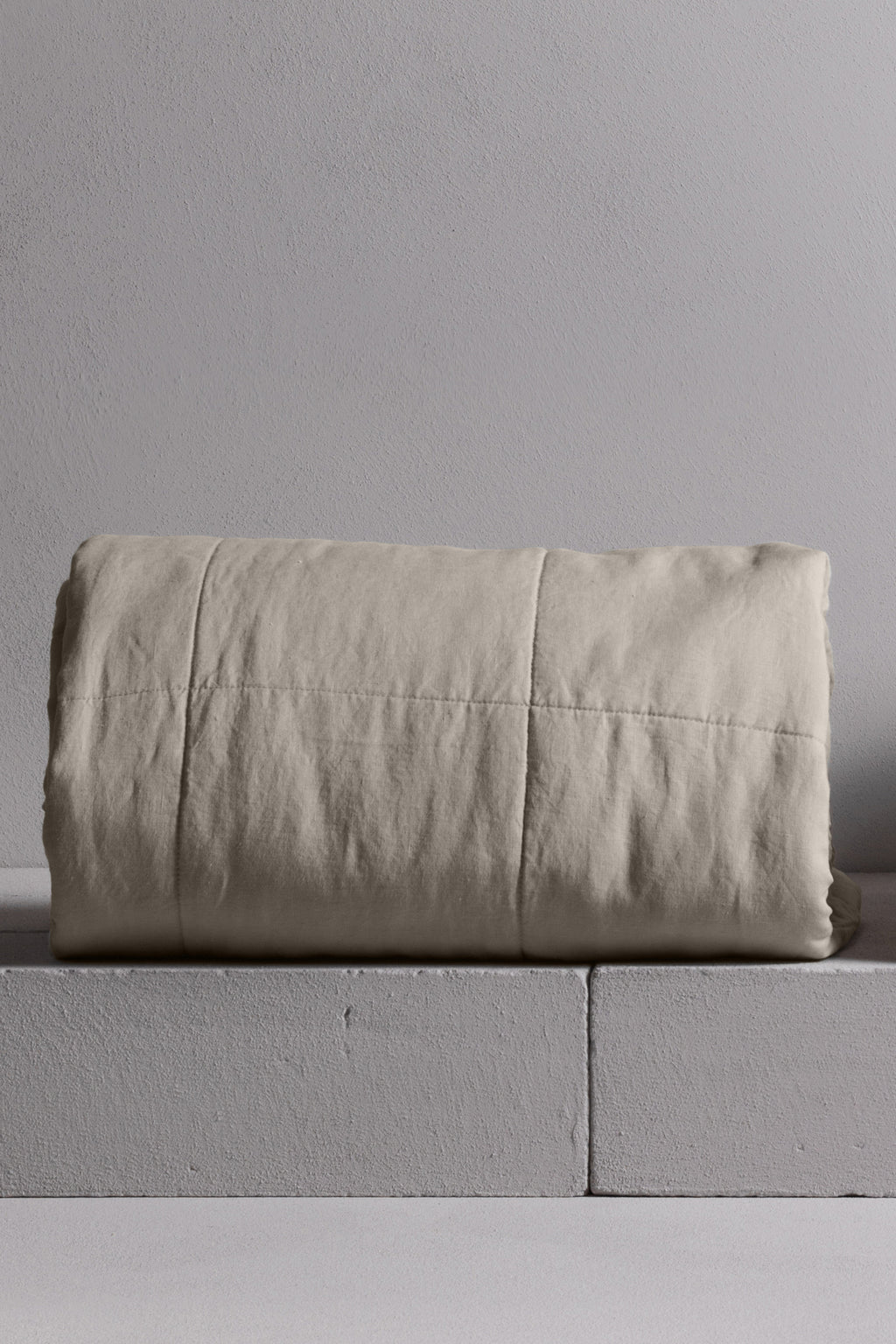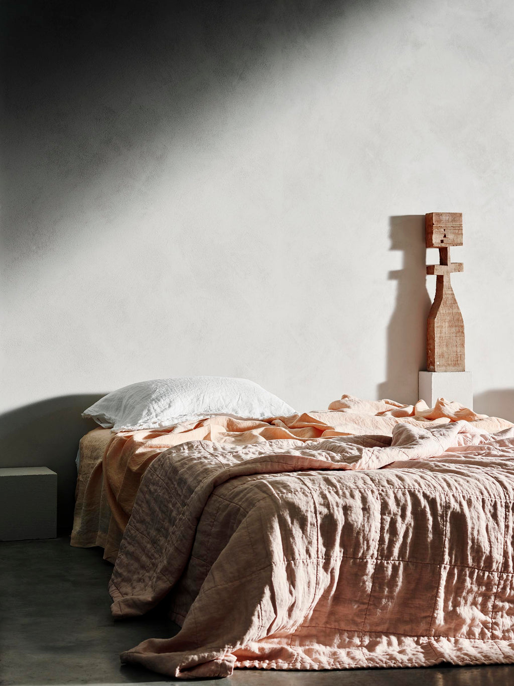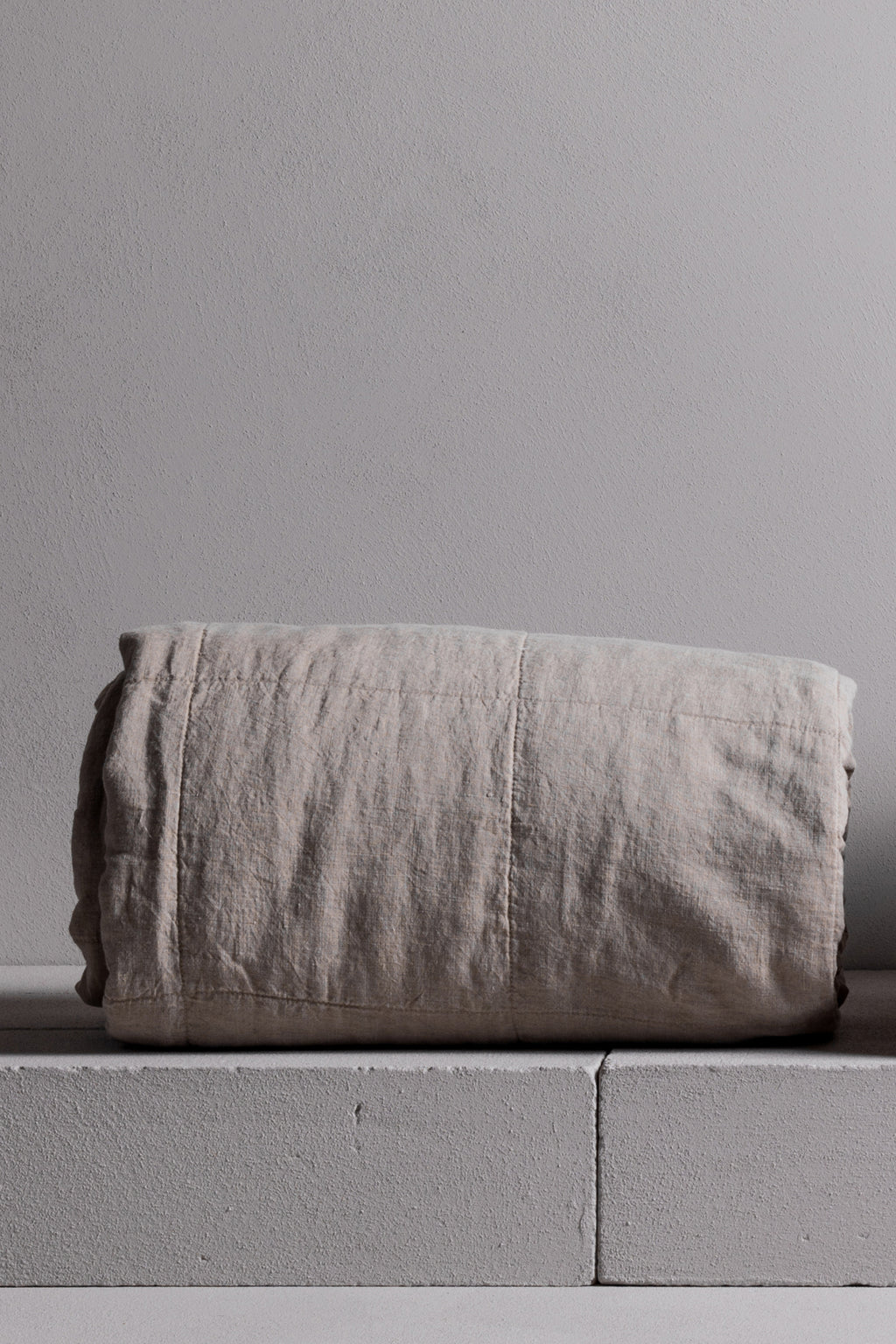the MINERALE pure linen vintage wash stitched quilt is from the family of our MINERALE vintage wash sheeting. it is the outcome of an artisanal process that achieves a lovely matte hand-dyed finish; it relaxes the fibres to produce a soft handle and highlights the subtle colour palette that is a signature of bedouin SOCIETE. the fill is cotton.