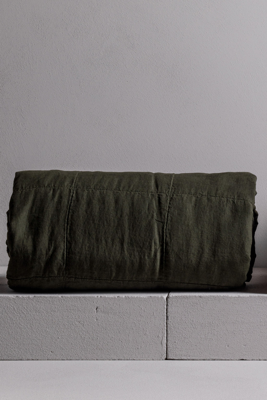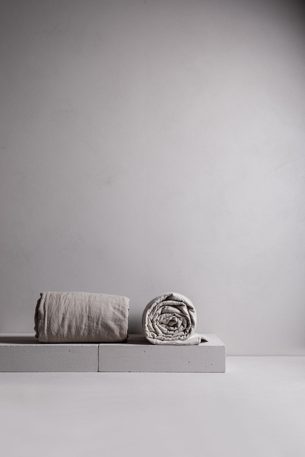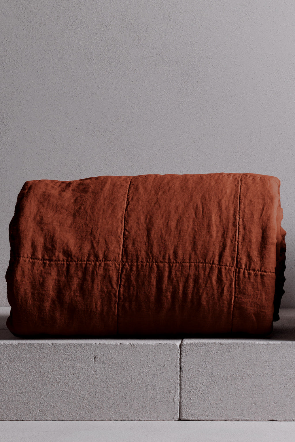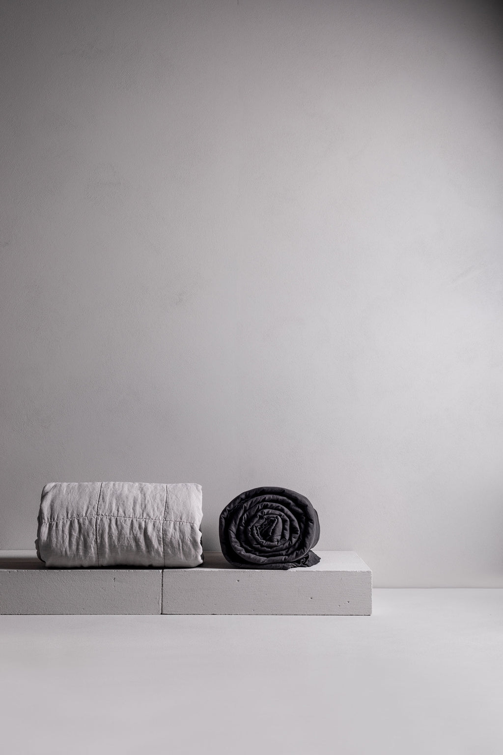 the MINERALE pure linen vintage wash stitched quilt is from the family of our MINERALE vintage wash sheeting. it is the outcome of an artisanal process that achieves a lovely matte hand-dyed finish; it relaxes the fibres to produce a soft handle and highlights the subtle colour palette that is a signature of bedouin SOCIETE. the fill is cotton.
