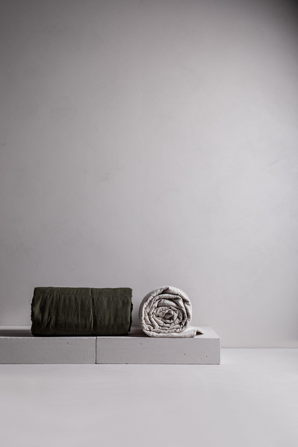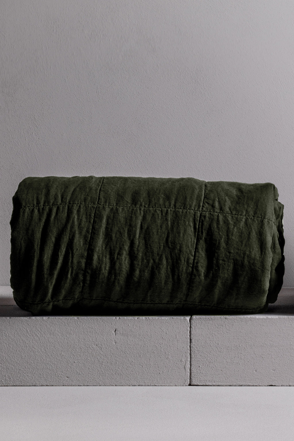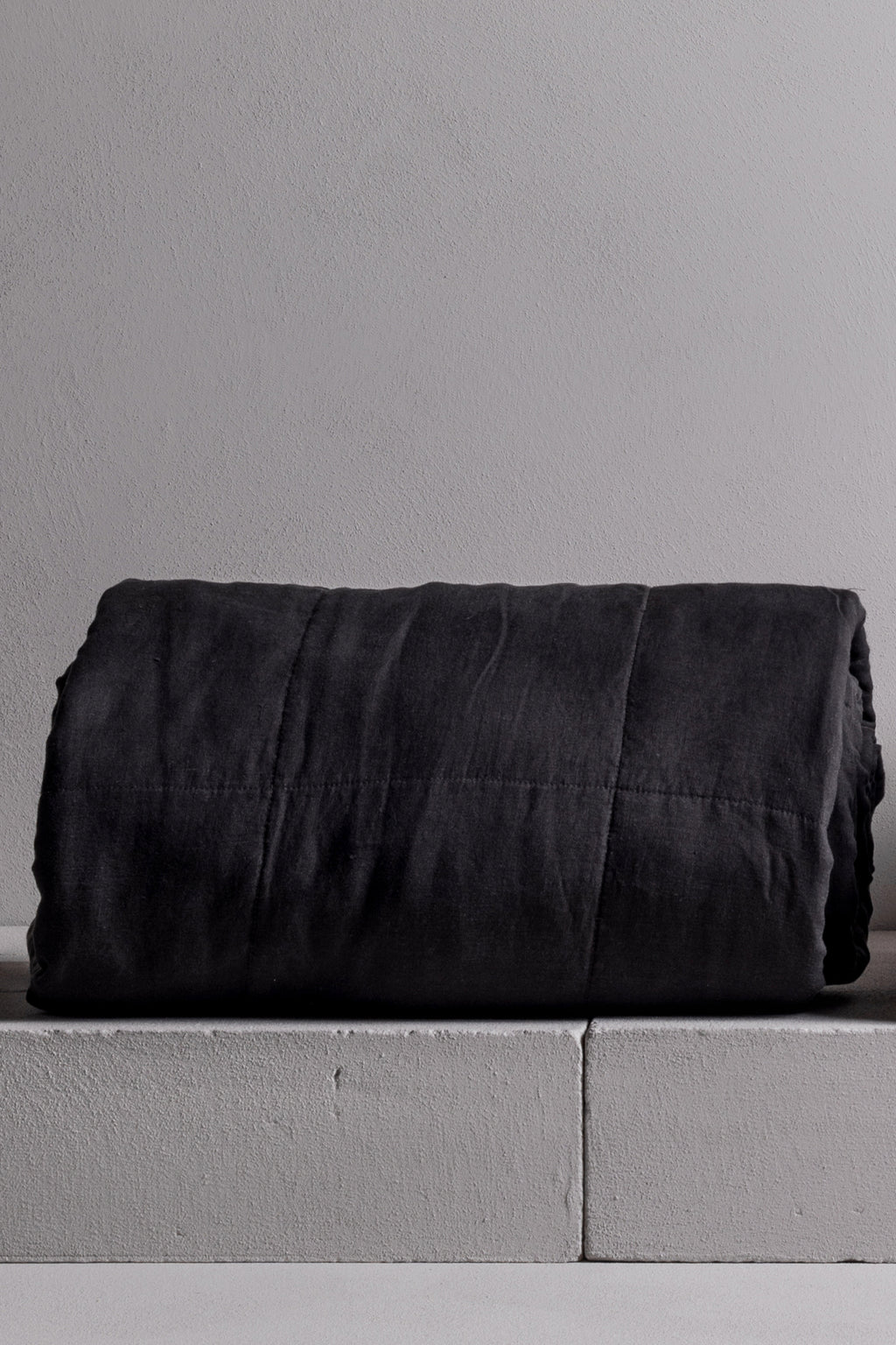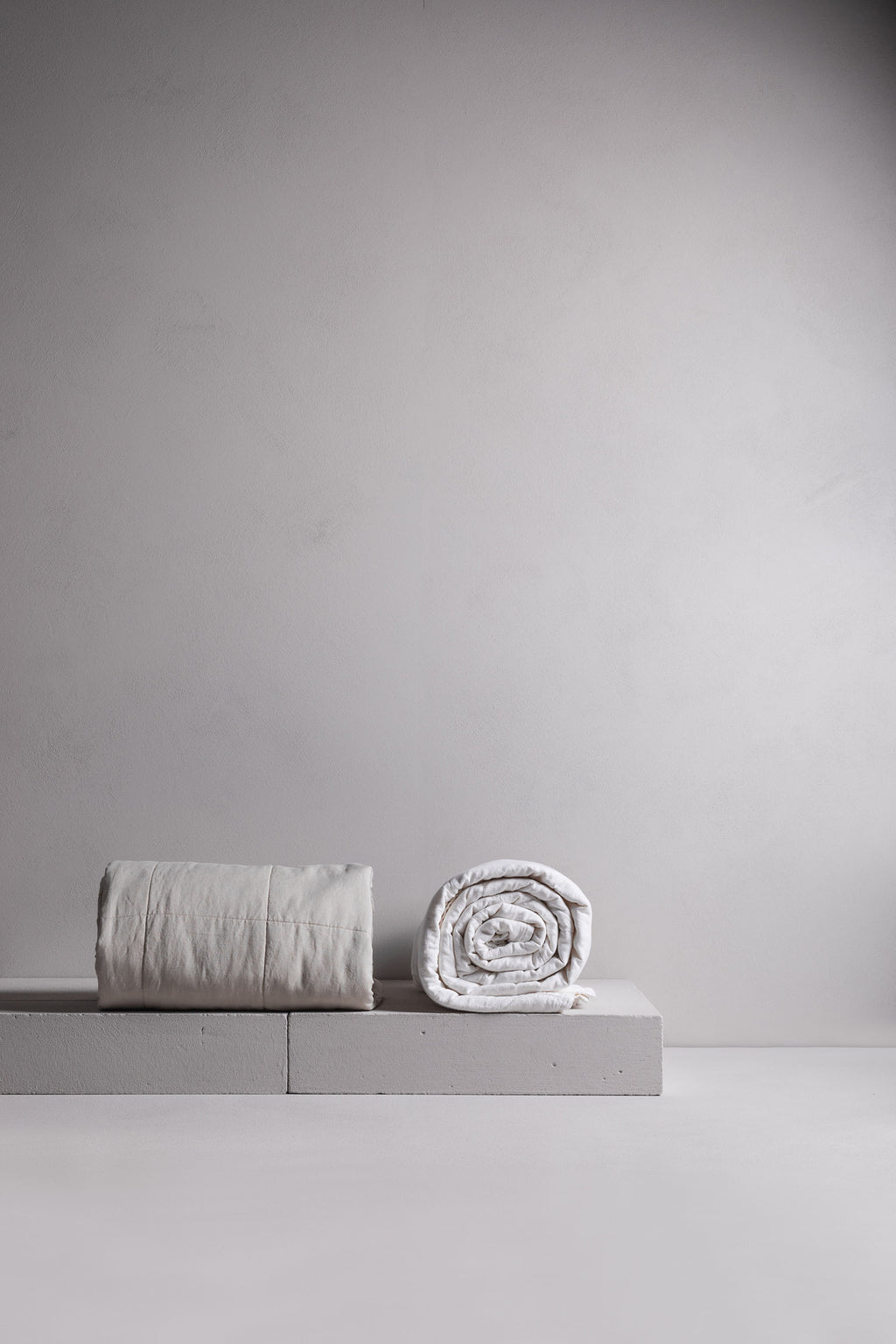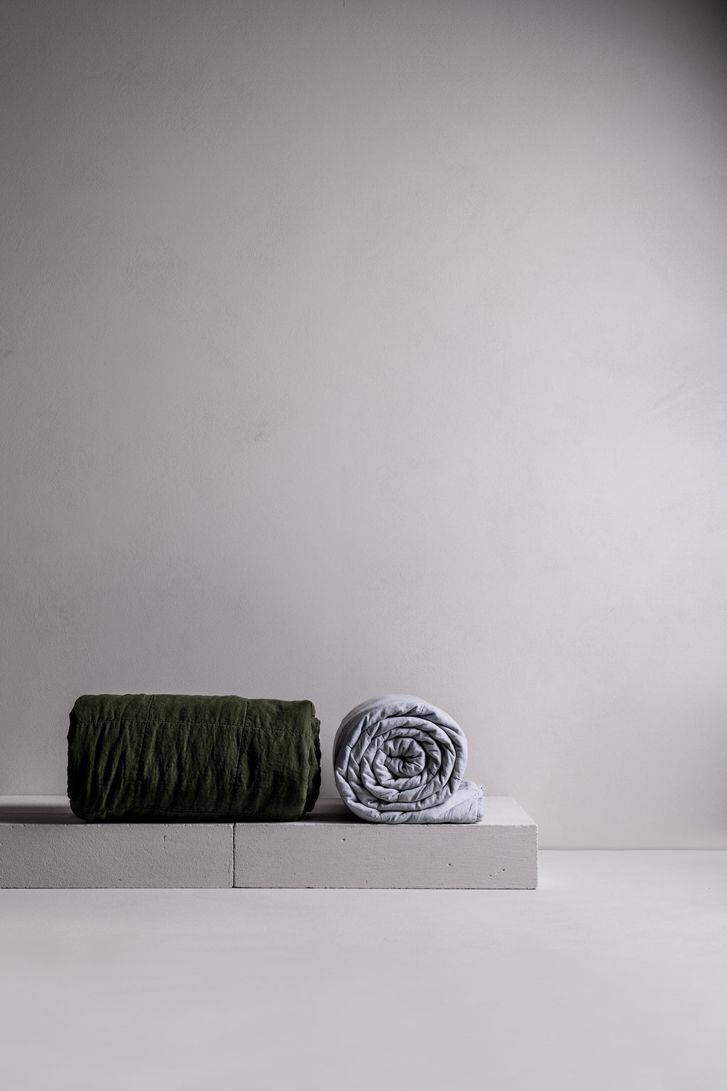 the MINERALE pure linen vintage wash stitched quilt is from the family of our MINERALE vintage wash sheeting. it is the outcome of an artisanal process that achieves a lovely matte hand-dyed finish; it relaxes the fibres to produce a soft handle and highlights the subtle colour palette that is a signature of bedouin SOCIETE. the fill is cotton.